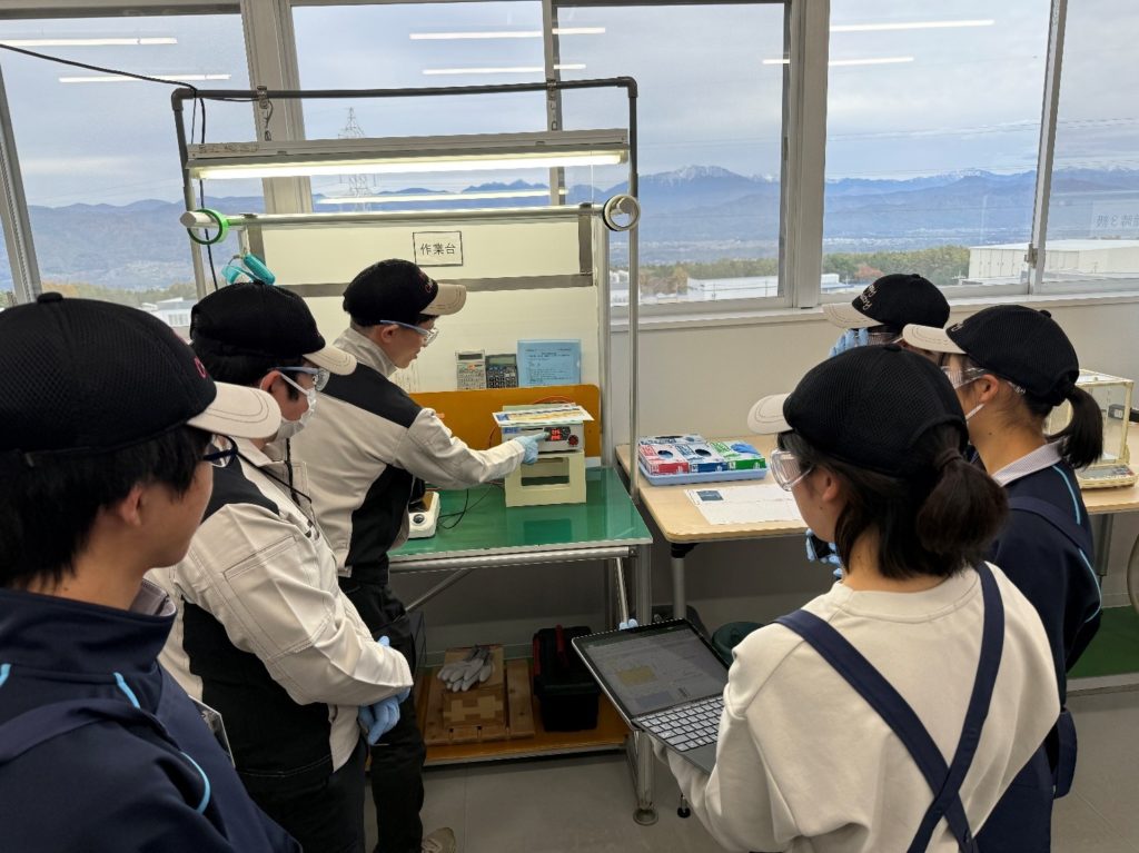 11月13日、理数科1年では、サン工業株式会社様へお伺いし金属電解メッキの実習を通して電気量と析出量の関係に触れ化学的な考え方を学びました。1年時では化学を学んでいませんが11月6日の出前授業にて概要を習いその知識を用いて考察を行いました。 工場見学も行わせていただき、学校で学ぶ内容が実際に社会に活かされていることを実感しました。 サン工業の皆様に温かくお迎えいただき、終始和やかに実習を行うことができました。サン工業の皆さま、本当にありがとうございました。